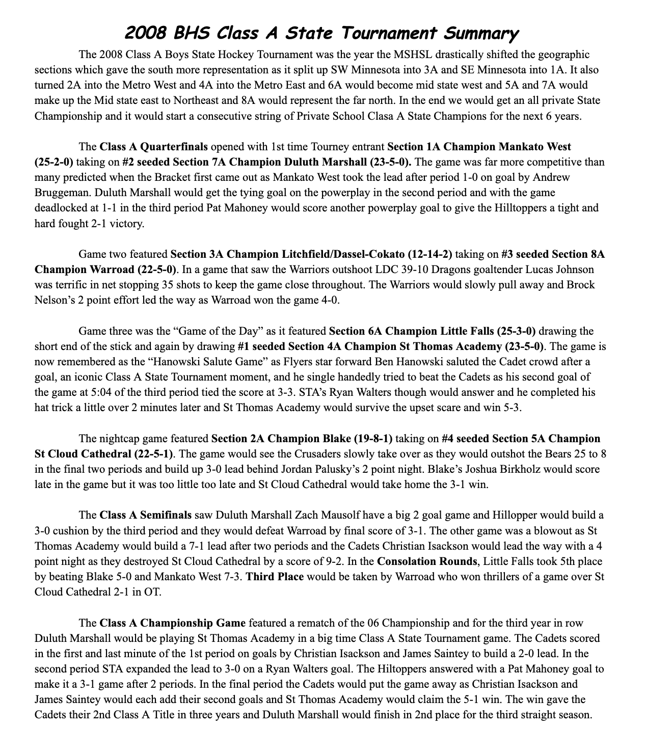 BHS 2008 Class A State Hockey Tournament
