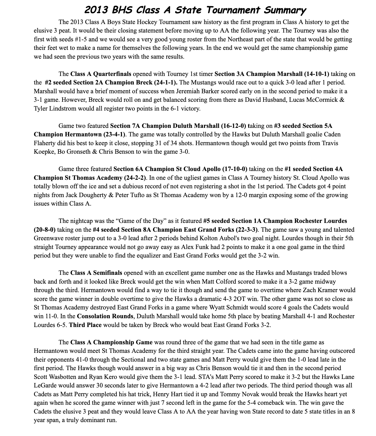 BHS 2013 Class A State Hockey Tournament